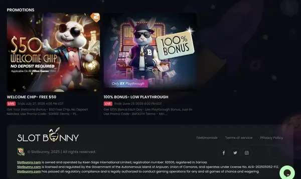 Wir arbeiten unter einer Anjouan-Lizenz mit der Nummer ALSI-202505052-FI2 und halten unsere Eigentümerangaben transparent: Keen Sage International Ltd. Unser Service ist строго nur für Erwachsene ab 18+ bestimmt, und wir können während KYC eine Altersbestätigung anfordern. Spielergebnisse basieren auf RNG-Software, die von Dritten zertifiziert ist, auch wenn die konkrete Prüfstelle in unserer öffentlichen Auflistung nicht genannt wird. Für Konto- und Zahlungssicherheit nutzen wir erweiterte SSL-Verschlüsselung und empfehlen Spielern, E-Mail- und Gerätezugriff abzusichern. Wenn du SlotBunny Bewertungen liest, siehst du oft, dass Klarheit zu Limits und Verifizierung ein wichtiger Teil des Sicherheitsgefühls online ist.